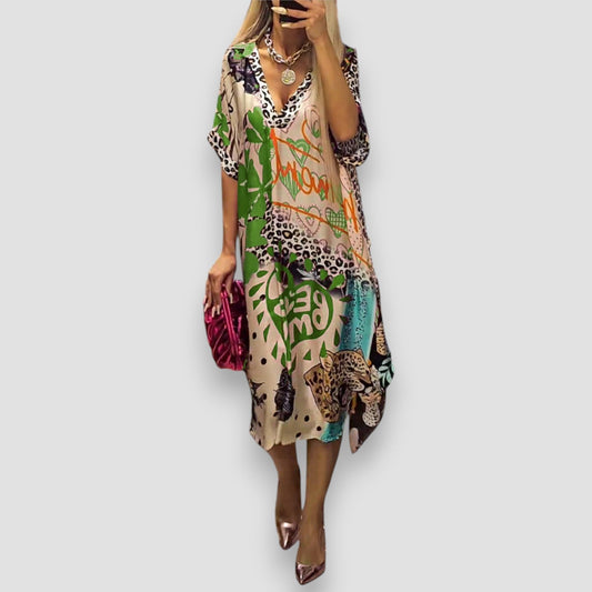 Gina™ | Elegancka luźna letnia sukienka z dekoltem w kształcie litery V