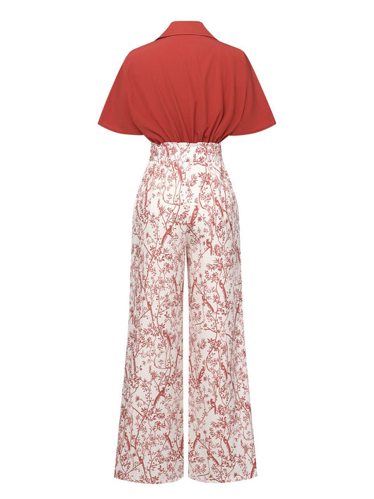 Kombinezon z motylami i patchworkowym dekoltem w serek z lat 50.