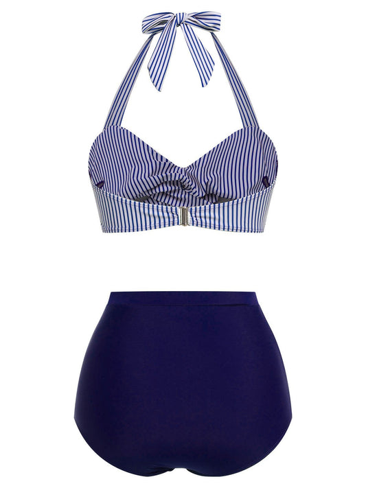 Komplet bikini z halterneckiem w paski w stylu retro