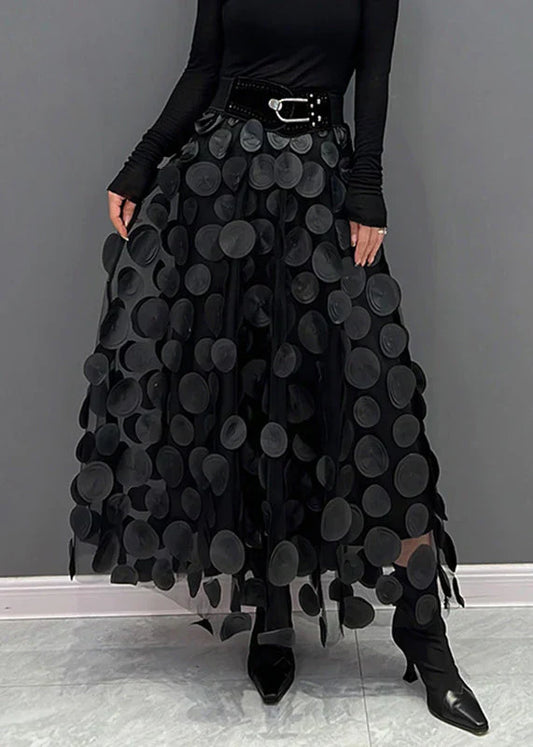 Krystyna | Elegancka patchworkowa spódnica tiulowa w czarne kropki