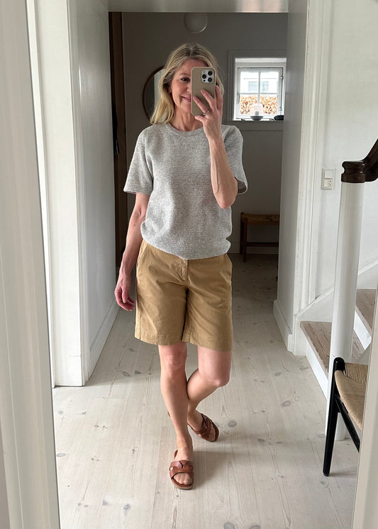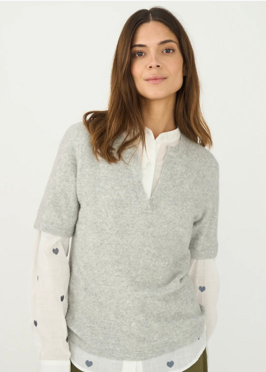 Pieszak PD-Billie Rękaw 2/4 Dzianina z dekoltem w kształcie litery O w kolorze jasnoszarym melanżu