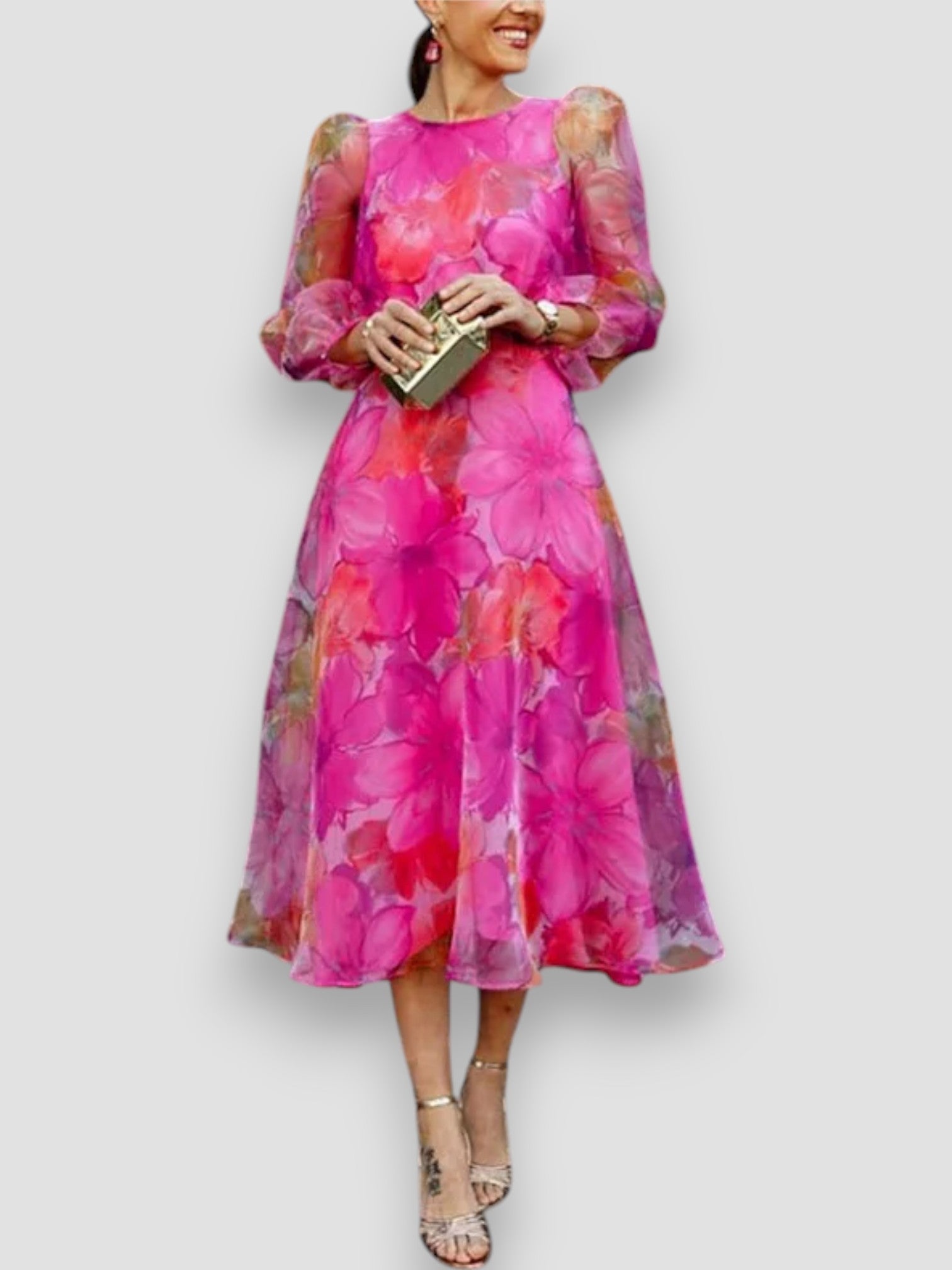 Dodaj odrobinę elegancji do swojej garderoby z sukienką Aria w kwiaty. Klasyczny kwiatowy wzór i wygodny krój sprawiają, że sukienka doskonale nadaje się na okazje codzienne i formalne. Niezależnie od tego, czy wybierasz się na brunch, przyjęcie w ogrodzie czy wesele, w tej sukience zawsze będziesz wyglądać elegancko.