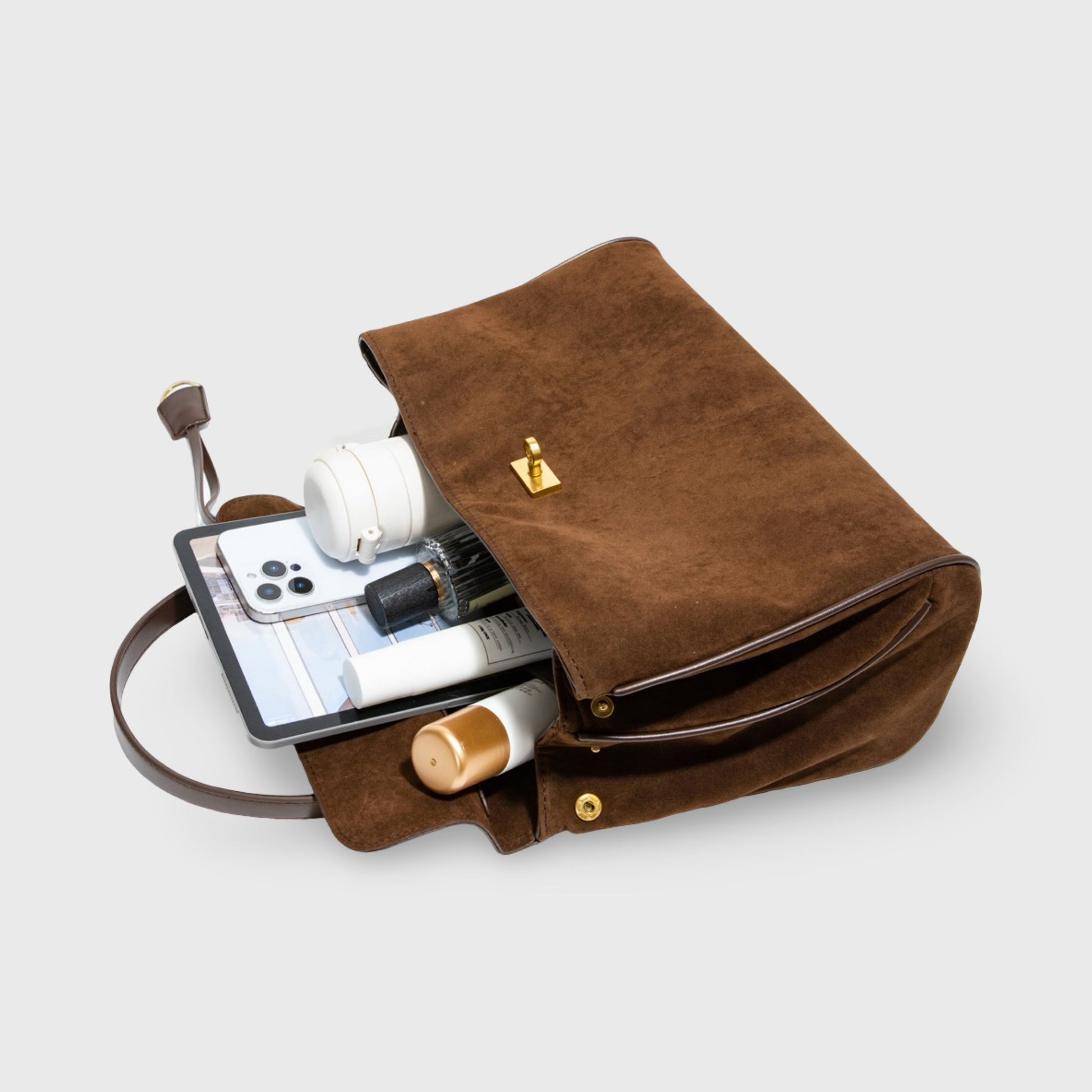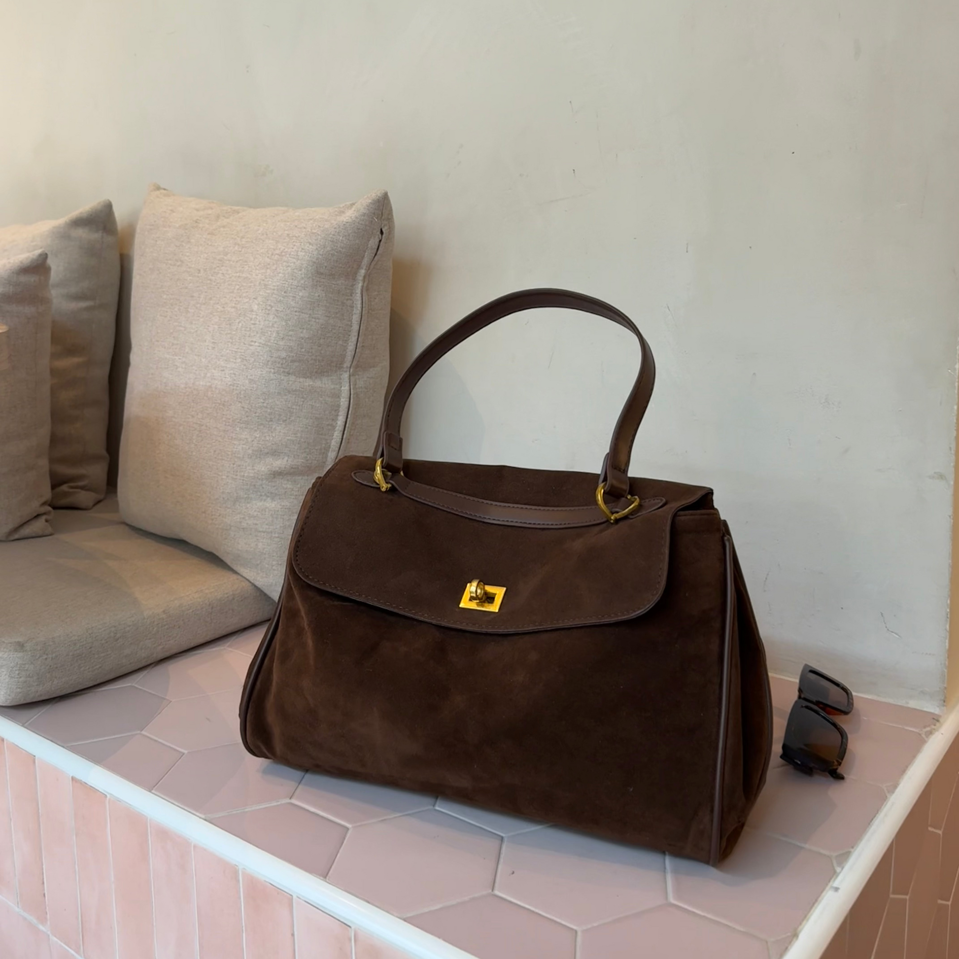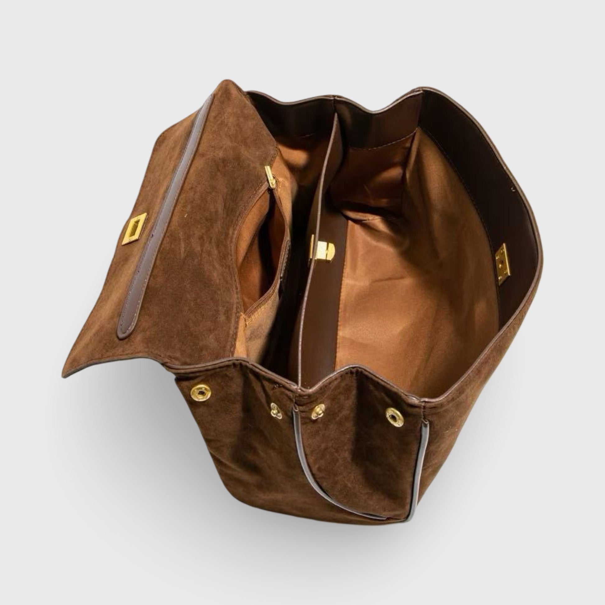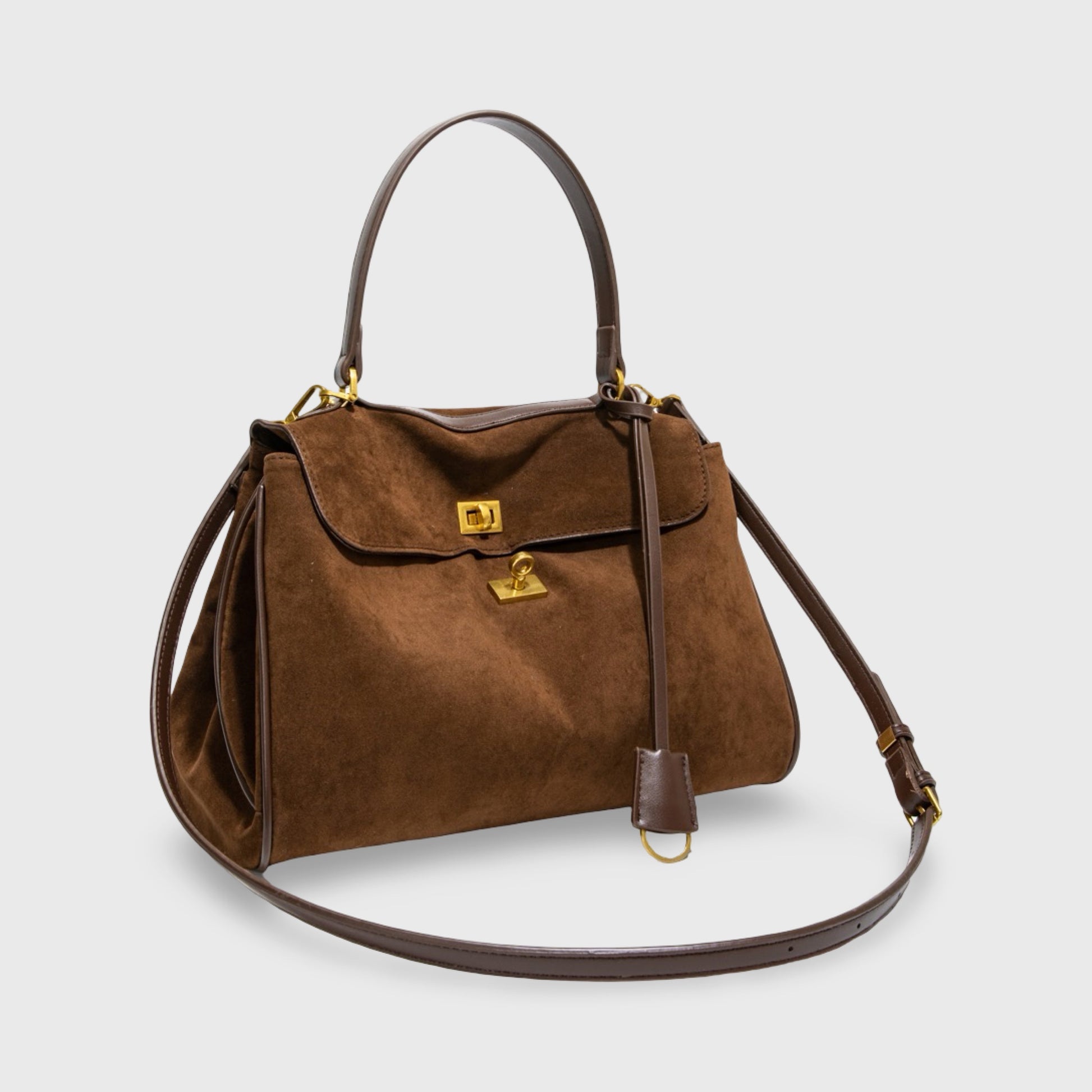 Meet the Ciara Suede - A vision of timeless elegance in luxurious vegan leather. This enchanting silhouette features gleaming gold accents and transitions effortlessly from shoulder to crossbody wear. With its refined snap closure and hidden interior pocket, the Ciara combines conscious luxury with everyday versatility.
