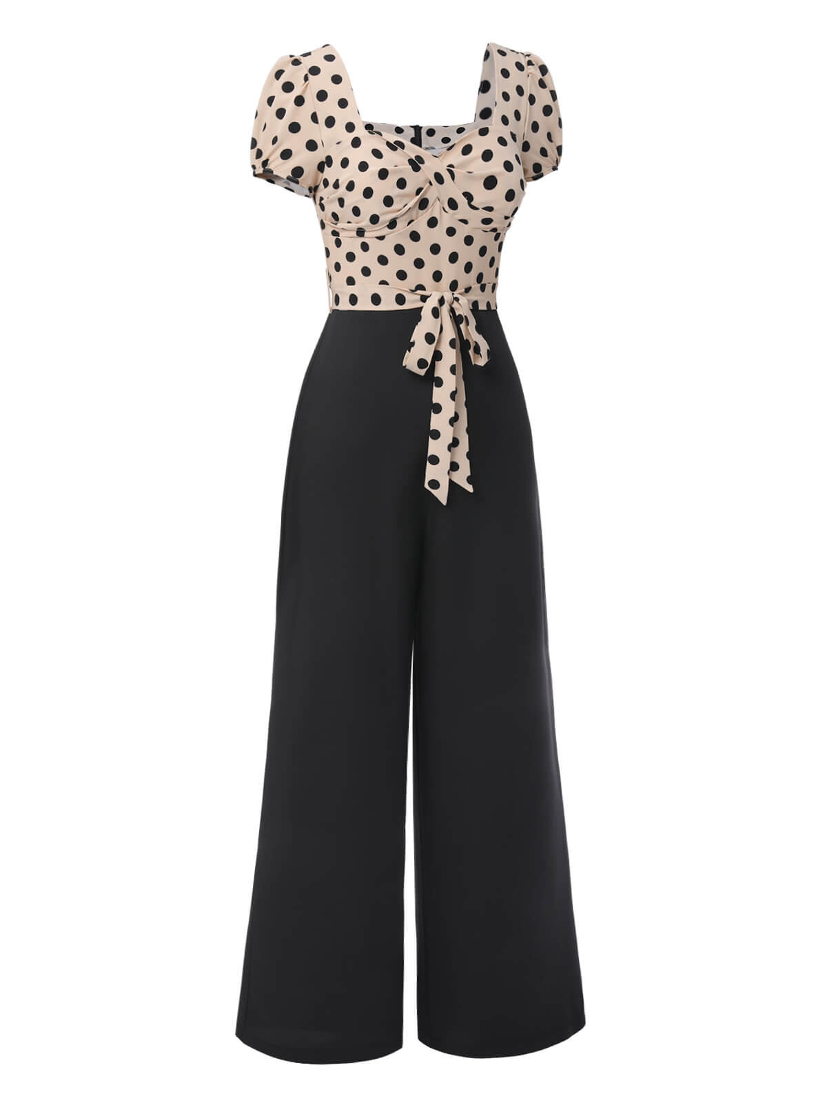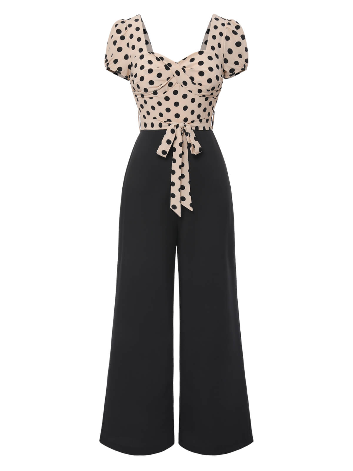 / Sukienka koktajlowa pin-up z lat 50. w stylu vintage, w czarne groszki