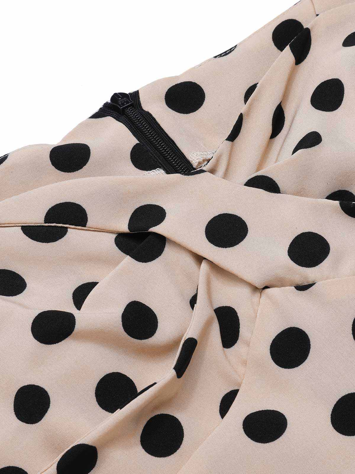 Sukienka koktajlowa pin-up z lat 50. w stylu vintage, w czarne groszki
