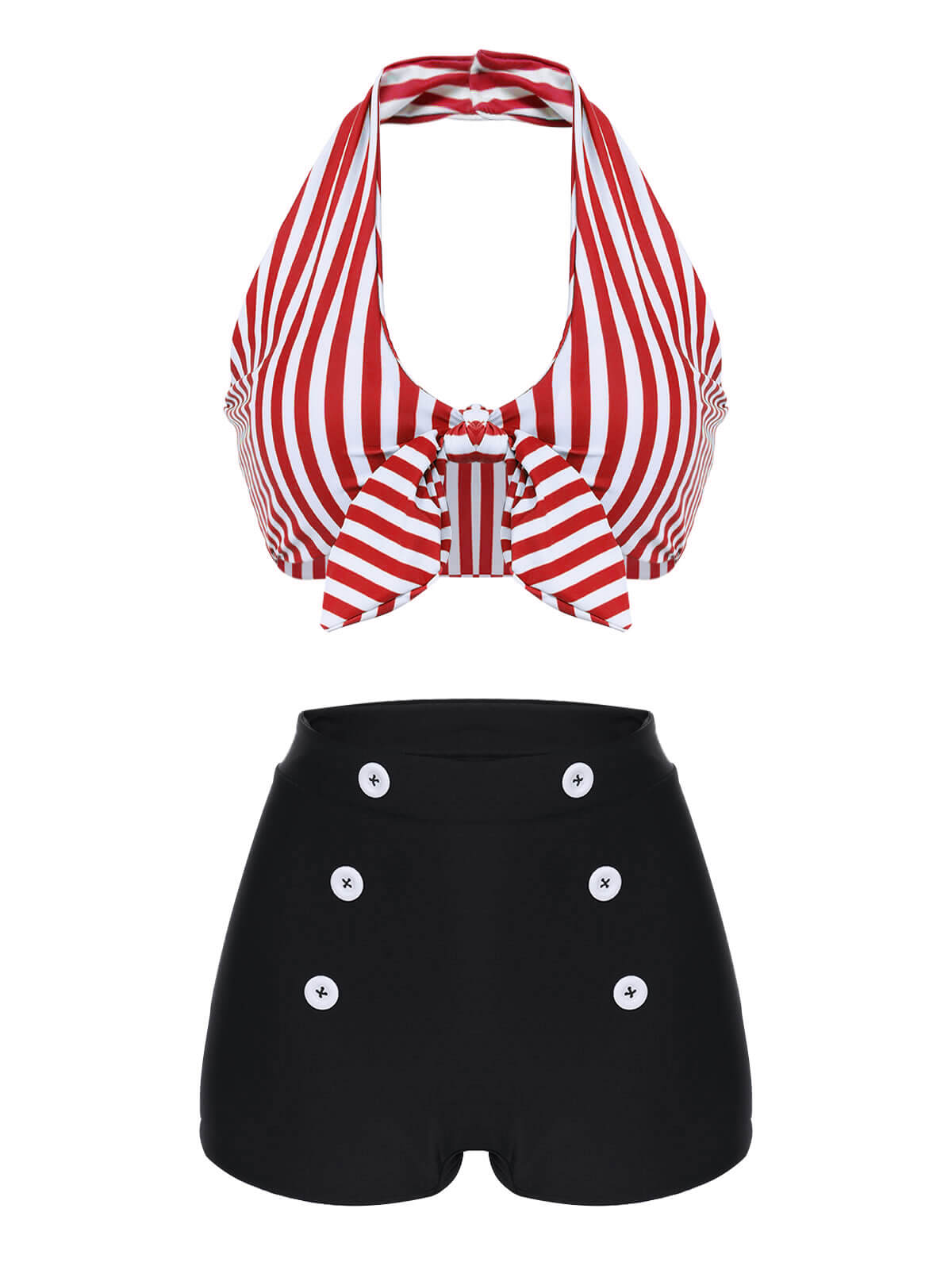 / Komplet bikini z halterneckiem w paski w stylu retro