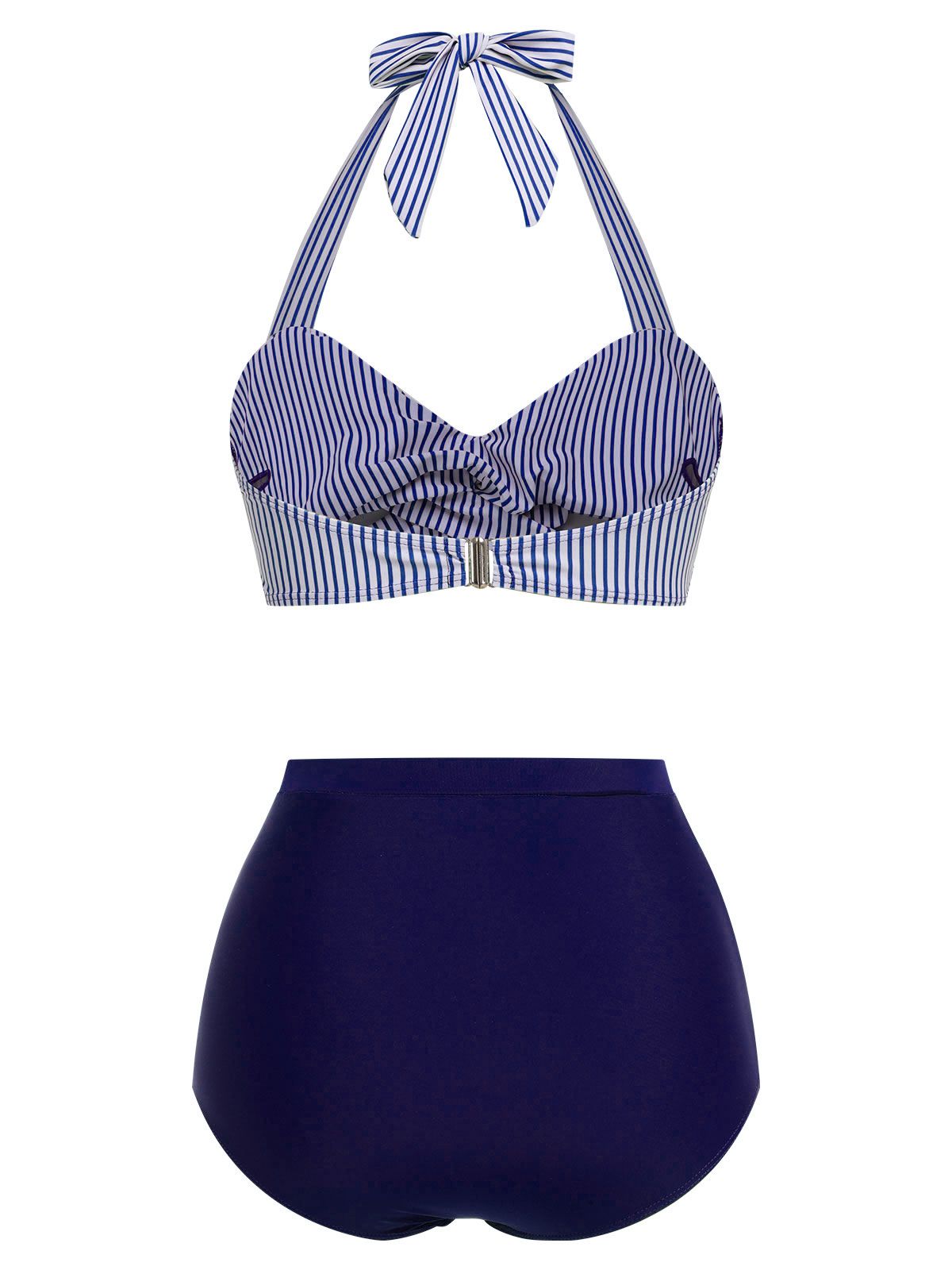 Komplet kostiumu kąpielowego z halterneckiem w paski z lat 40.