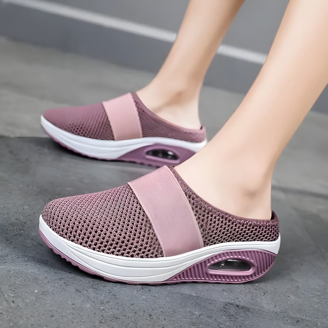 Wyposażone w elastyczną podeszwę z innowacyjną poduszką powietrzną, te chodaki skutecznie pochłaniają wstrząsy, minimalizując napięcia w stopach, kostkach i kolanach. Elastyczna podeszwa naturalnie dopasowuje się do Twoich ruchów, zapewniając płynny i bezwysiłkowy chód. Każdy krok jest miękko amortyzowany, przynosząc natychmiastową ulgę, nawet po wielu godzinach użytkowania. Dopasowane do wszystkich nawierzchni, zmniejszają dyskomfort związany z długimi dniami chodzenia lub stania w miejscu, jednocześnie oferując niezrównane poczucie swobody.