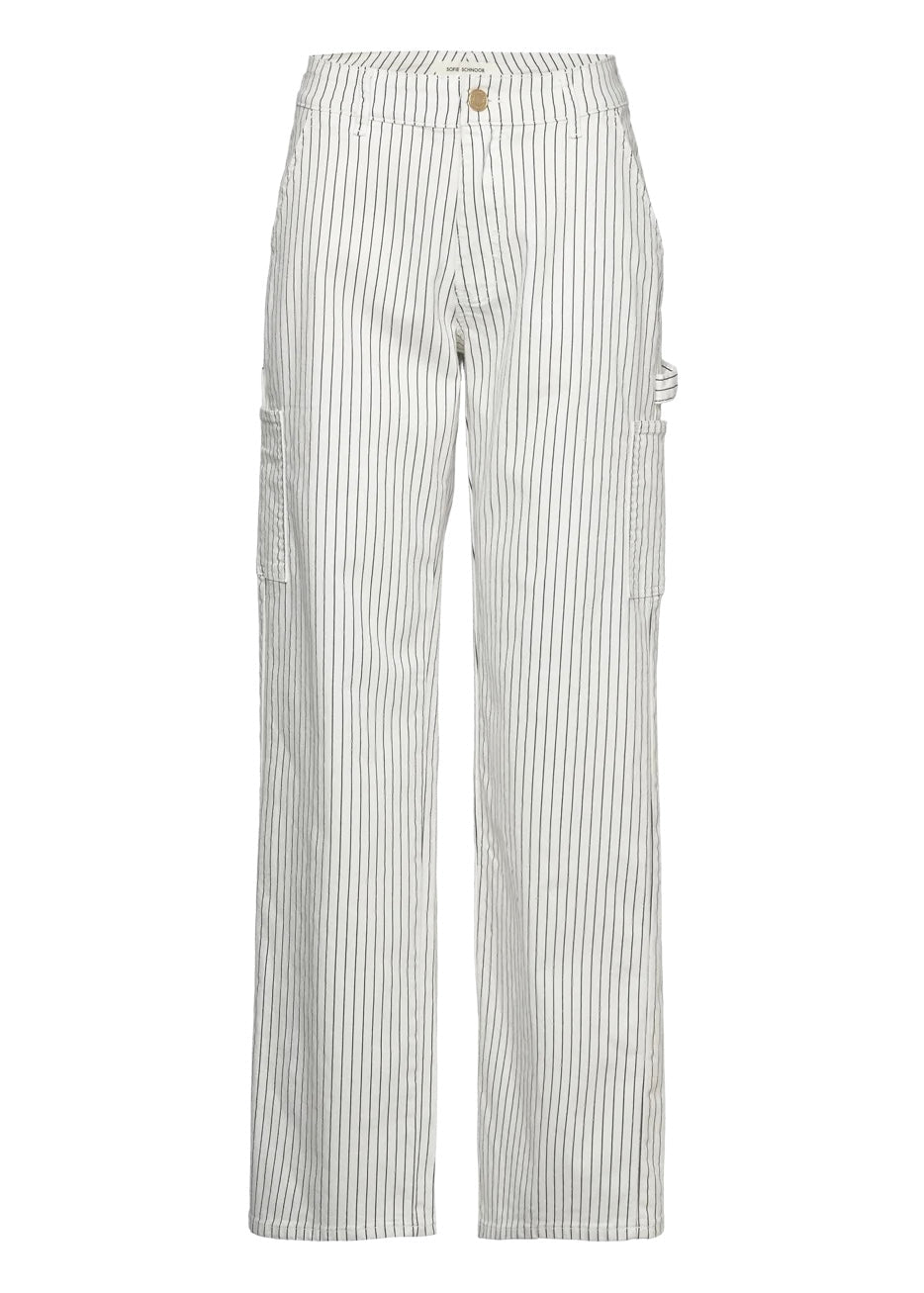 Piękne jeansy w paski od Sofie Schnoor. Jeansy mają proste nogawki, średni stan, zapięcie na guzik i zamek błyskawiczny. Mają kieszenie z tyłu, kieszenie z tyłu i fajne detale po bokach nogawek.