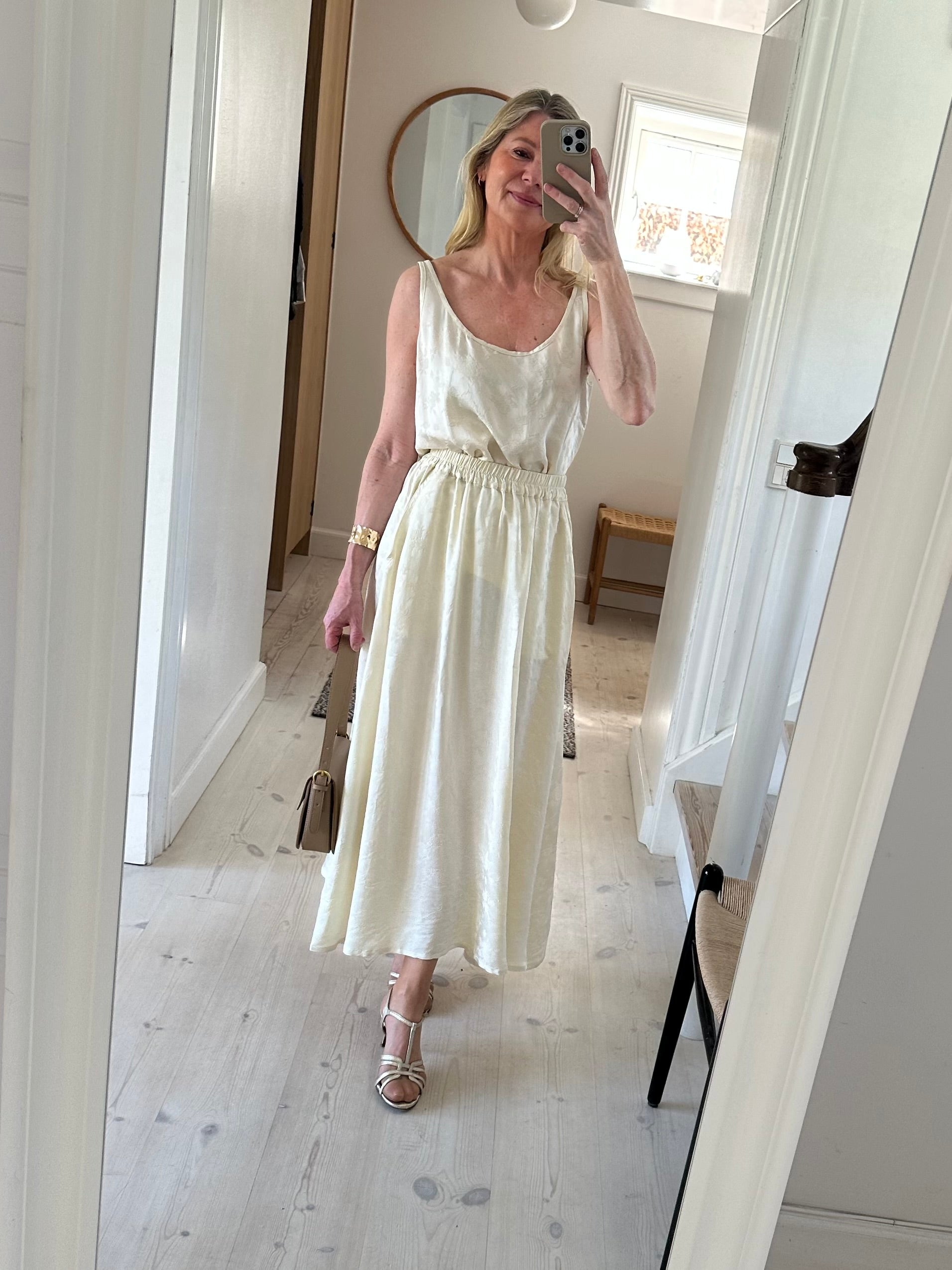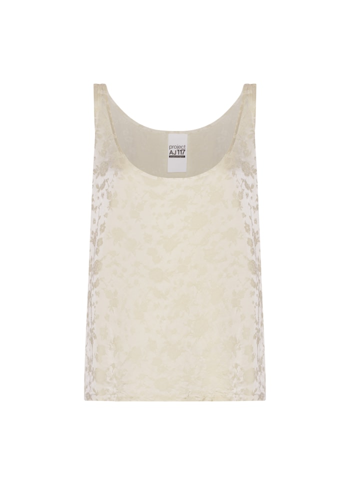 Lekki top marki Project AJ117 wykonany z miękkiej wiskozy z dodatkiem tkanego brokatu. Top ma okrągły dekolt i szerokie ramiączka. Pasuje do spódnicy Hailey.