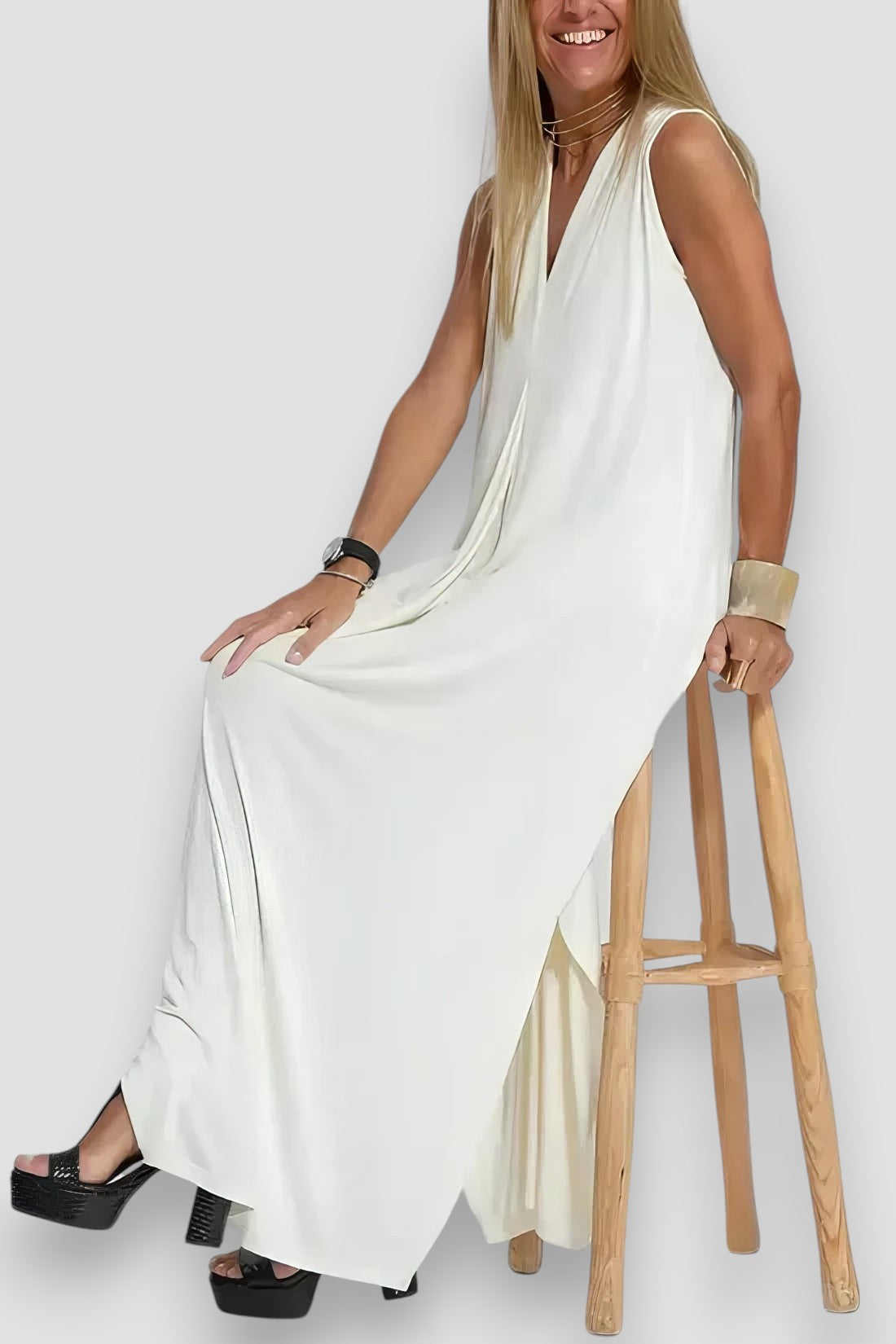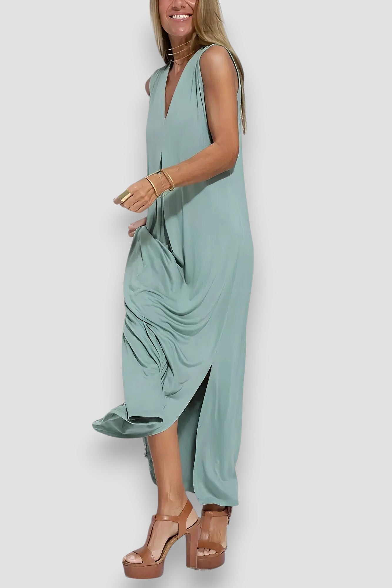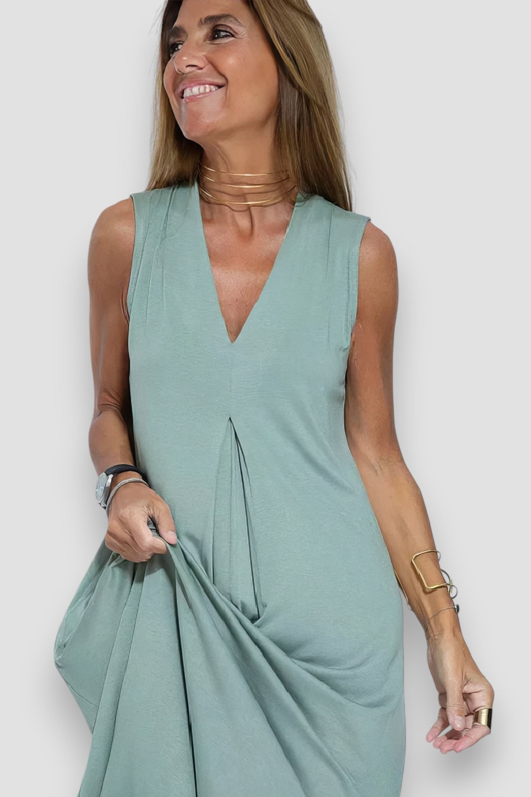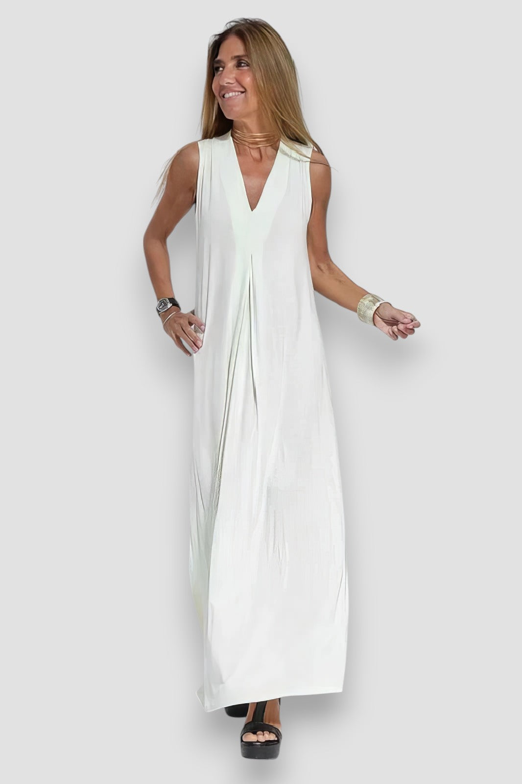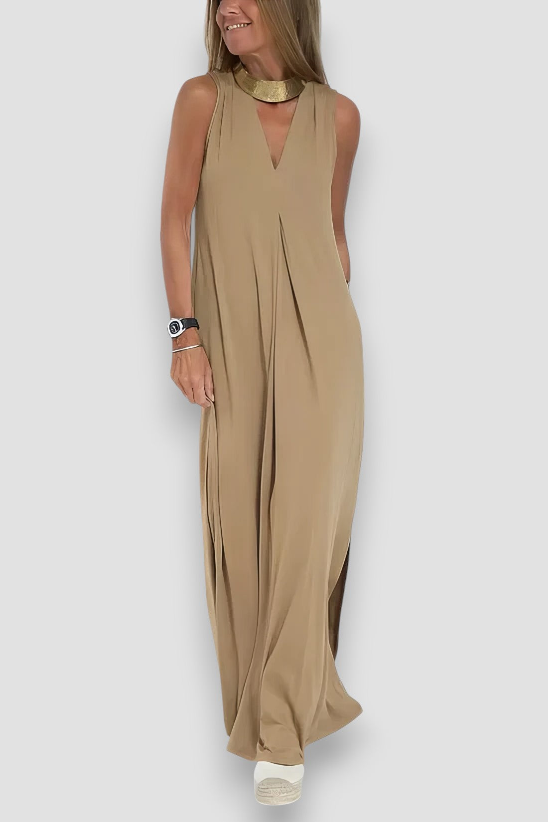 Dodaj odrobinę elegancji do swojej garderoby z długą sukienką Leonora. Dzięki dekoltowi w serek i dopasowanemu krójowi sukienka ta podkreśla sylwetkę, a miękki, oddychający materiał zapewnia maksymalny komfort przez cały dzień. Niezależnie od tego, czy idziesz do pracy, czy wychodzisz wieczorem, ta sukienka będzie idealnym wyborem na każdą okazję.