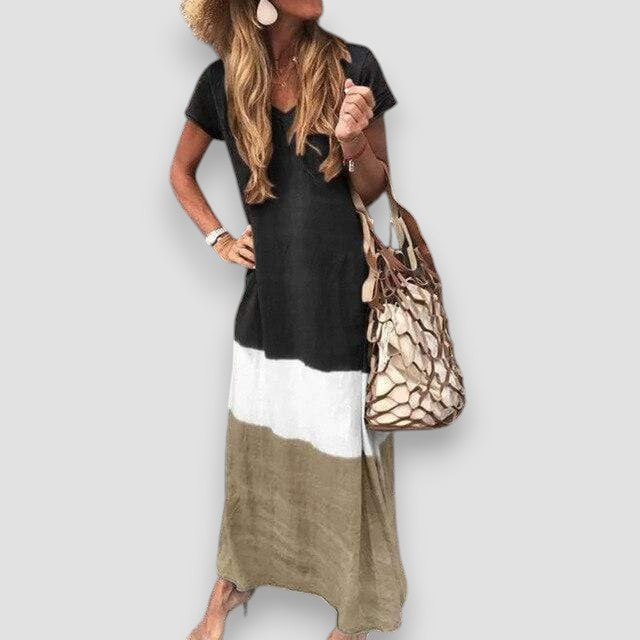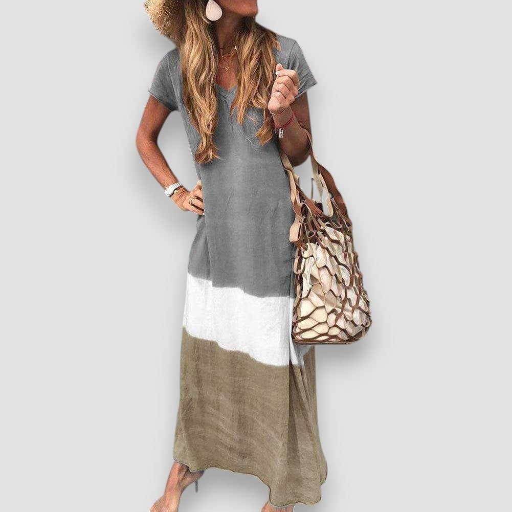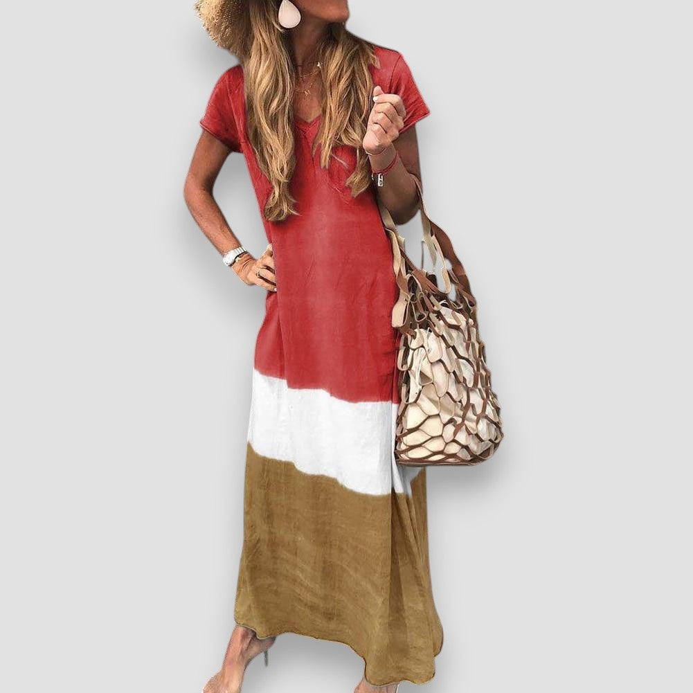 Dodaj odrobinę koloru i elegancji do swojej garderoby z długą sukienką w stylu boho Liviana . Luźny krój i żywe zestawienie kolorów sprawiają, że sukienka doskonale sprawdzi się na każdą okazję – od letnich dni po eleganckie wieczory.