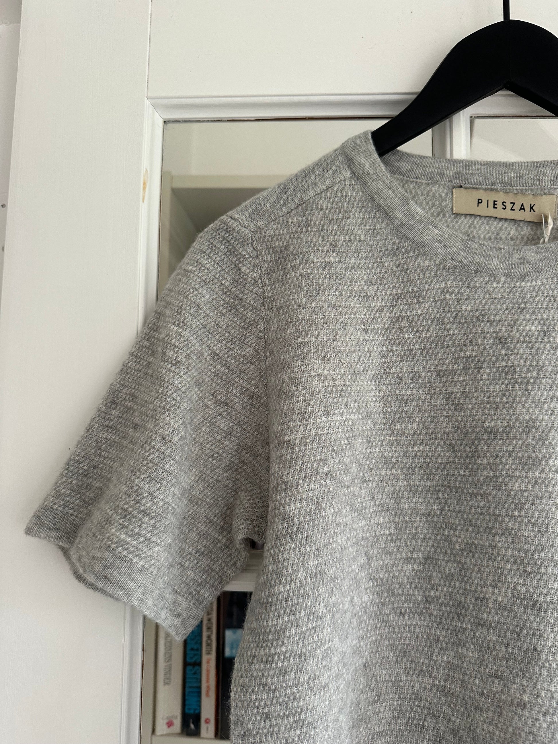 Miękka i lekka dzianina z krótkim rękawem od Pieszak. Dzianina ma okrągły dekolt, krótkie rękawy i piękną strukturę.