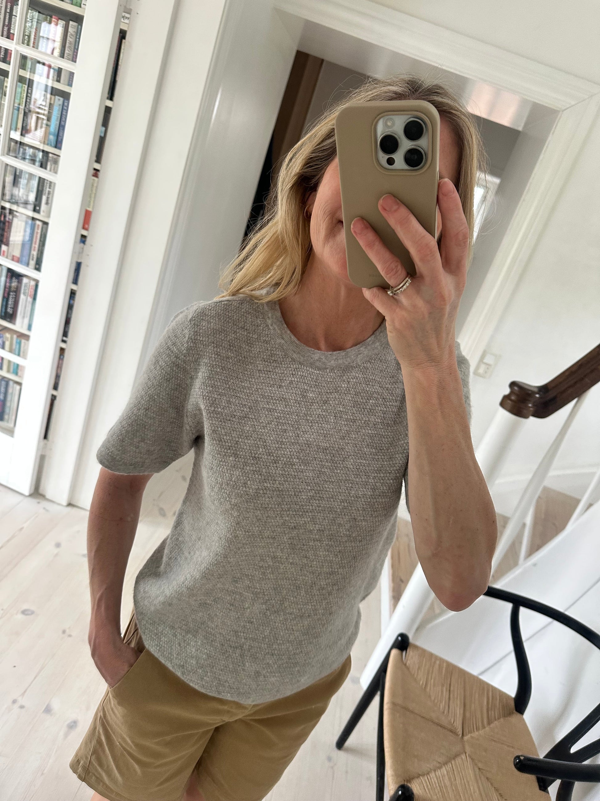 / Pieszak PD-Billie Rękaw 2/4 Dzianina z dekoltem w kształcie litery O w kolorze jasnoszarym melanżu