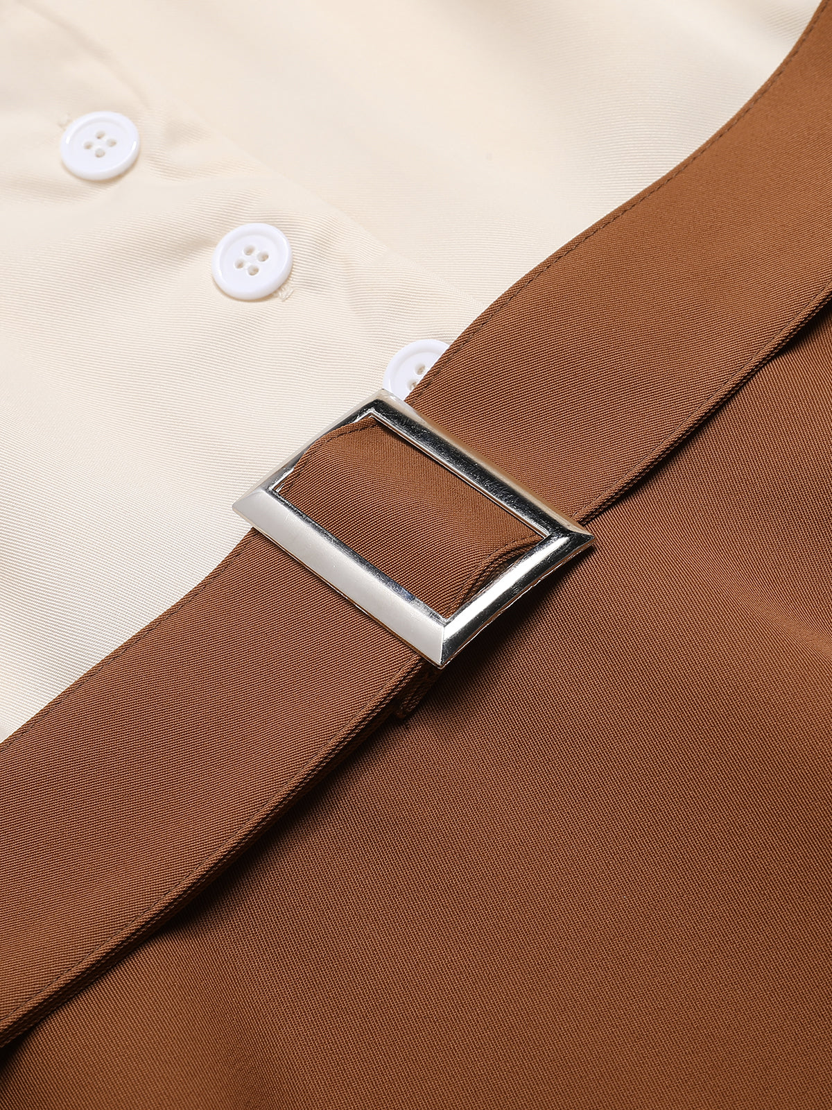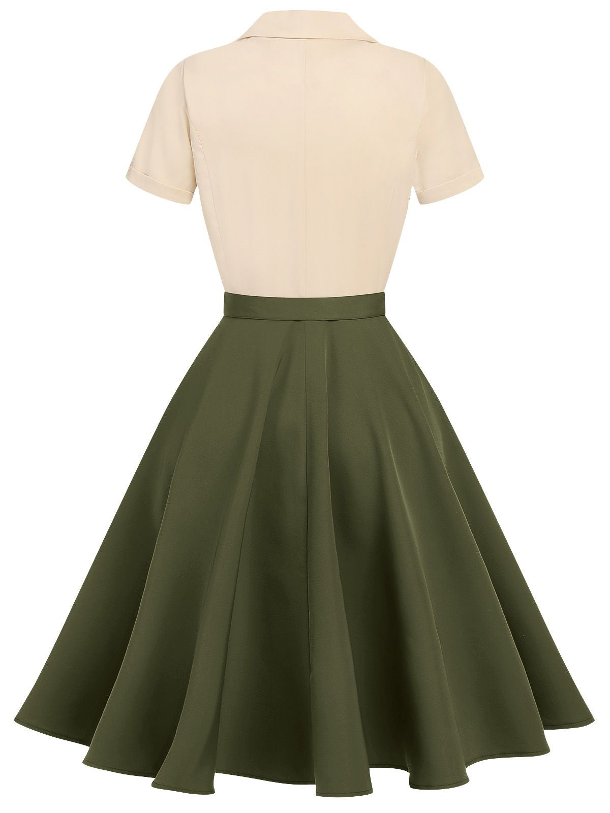 Dziewczyny, cieszcie się chwilą! Ta wesoła sukienka do kolan jest uszyta z bawełny i ma koszulowy kołnierzyk na granatowym tle. Cofnij się w czasie do połowy lat 50., kiedy królował kobiecy szyk, a sukienki emanowały czystą elegancją i uwodzicielską energią.