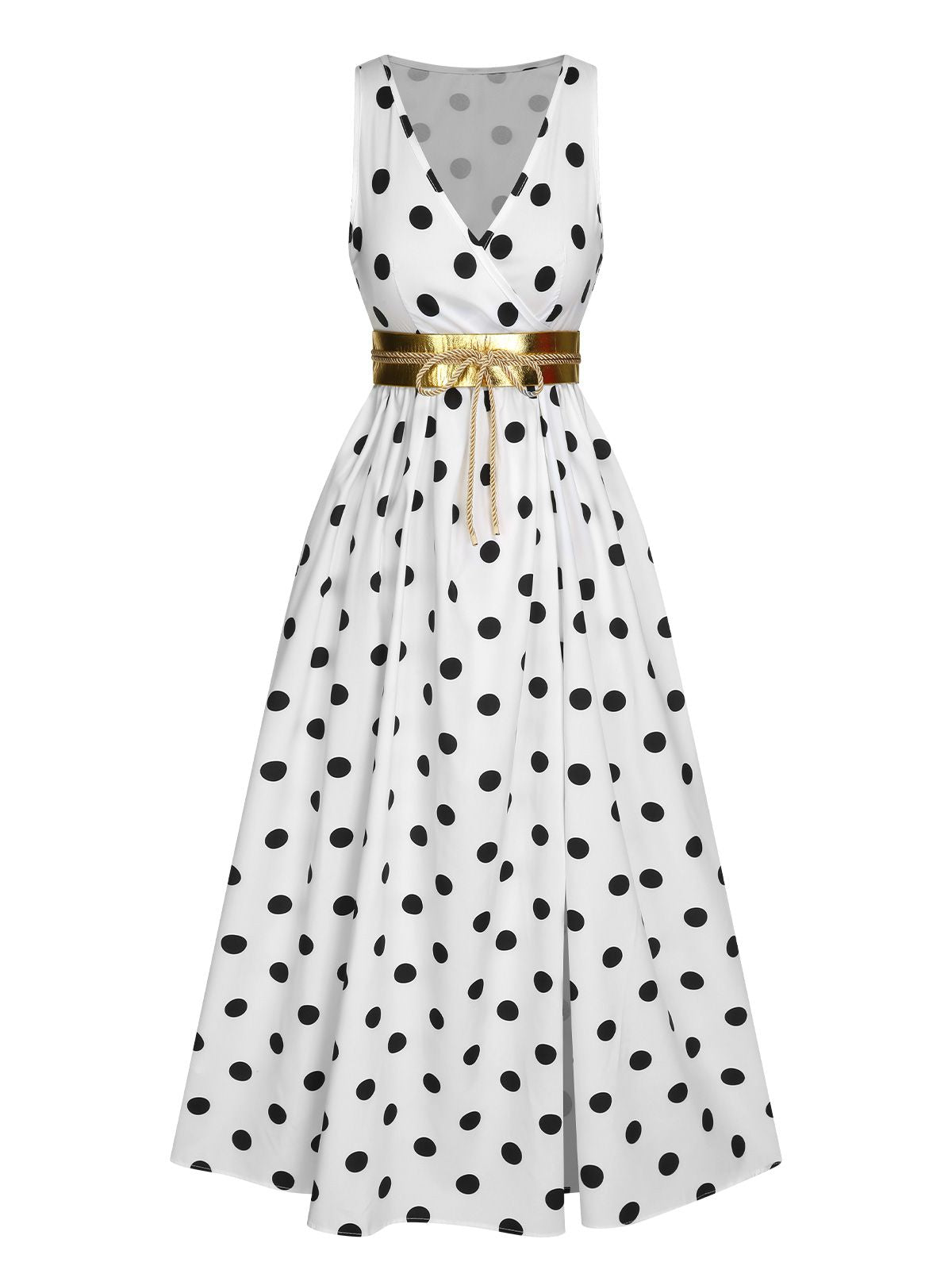 Sukienka z wysokim rozcięciem i dekoltem w serek z lat 30., z paskiem