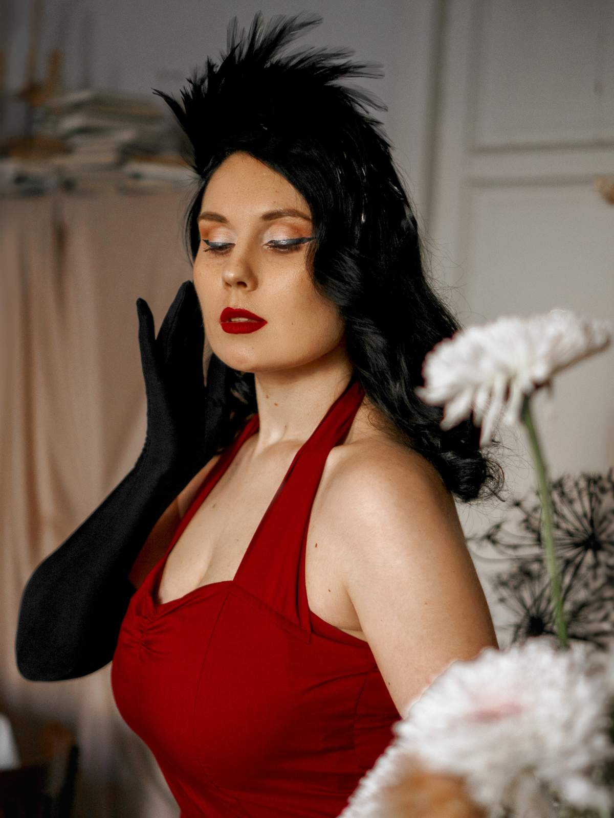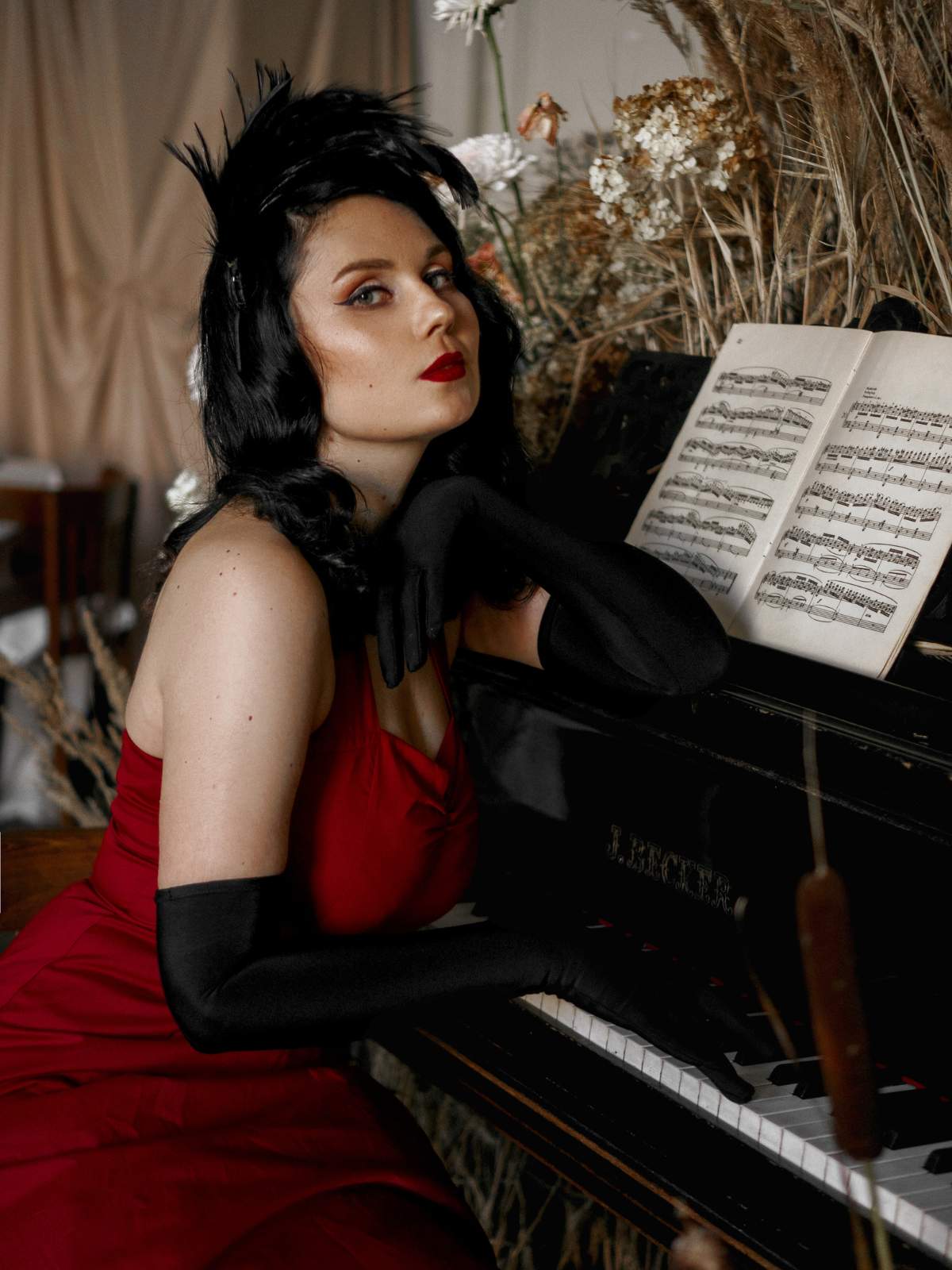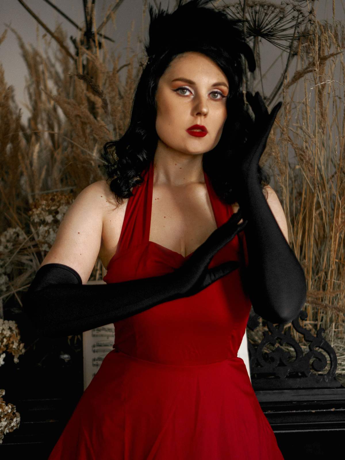/ Sukienka z dekoltem w kształcie serca i wiązaniem na szyi z lat 50.