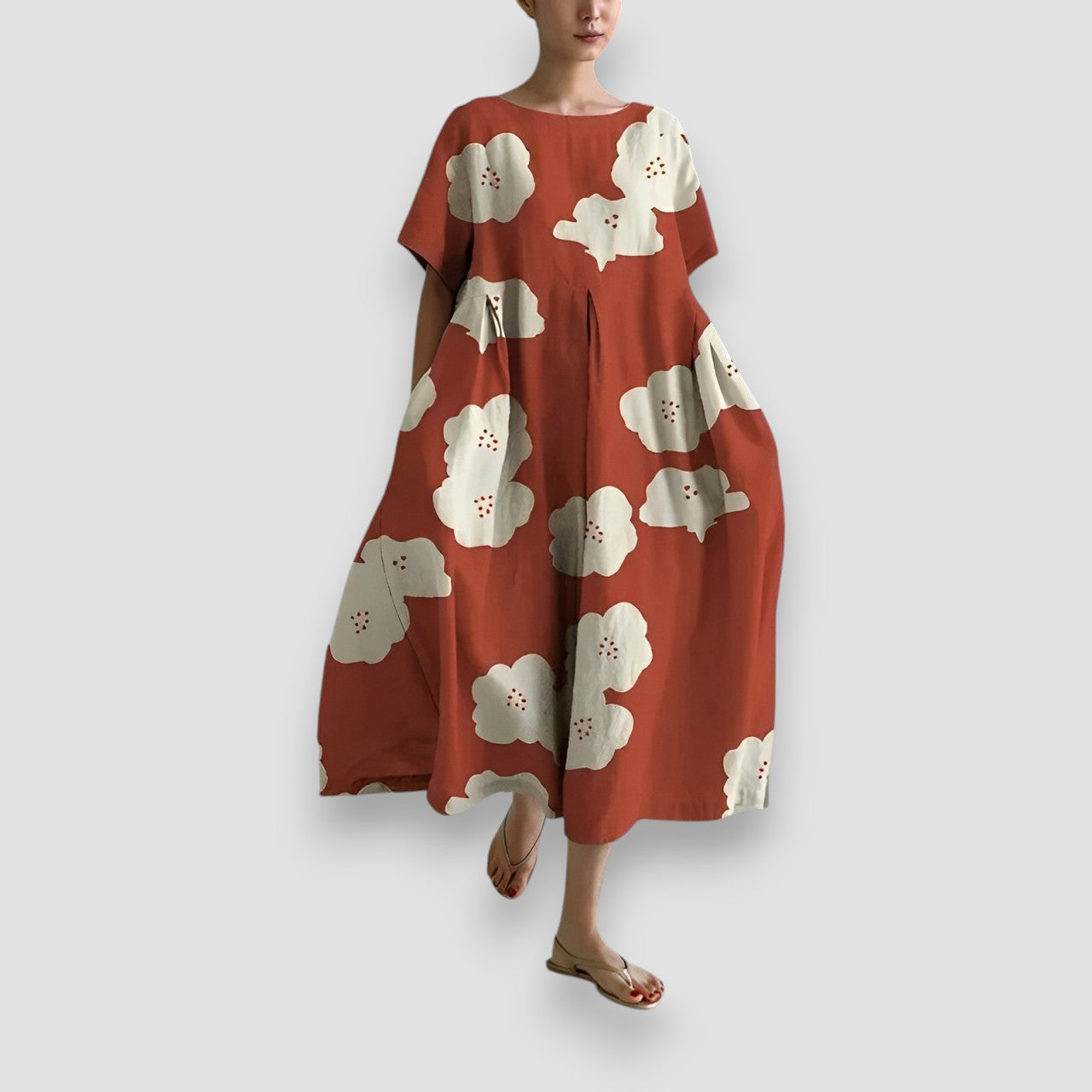 Sukienka Romina zapewnia wygodę i styl dzięki luźnemu, lekkiemu krojowi. Zabawny wzór i zwiewna tkanina sprawiają, że sukienka ta doskonale nadaje się do stworzenia świeżego, nowoczesnego looku. Niezależnie od tego, czy chcesz spędzić relaksujący dzień, czy dodać odrobinę elegancji, sukienka Romina zawsze będzie świetnym wyborem.